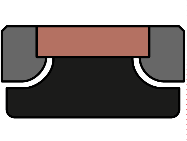 Four-piece capped piston T-seal with patented SKF locking anti-extrusion rings and PTFE cap